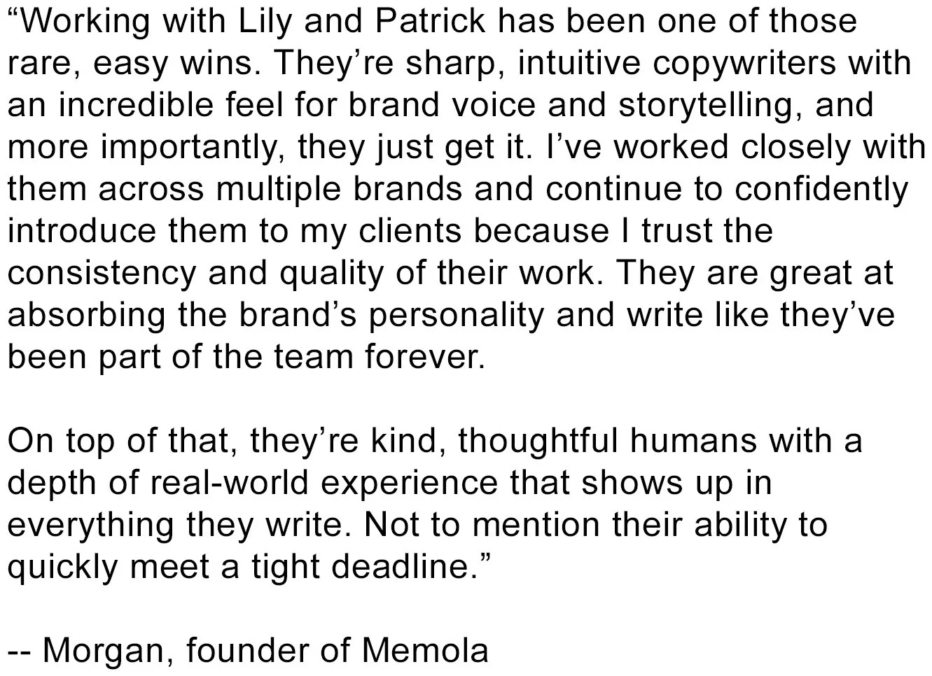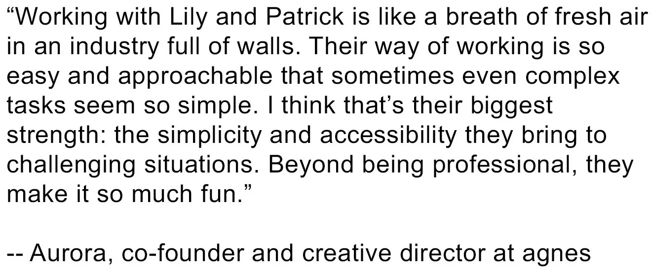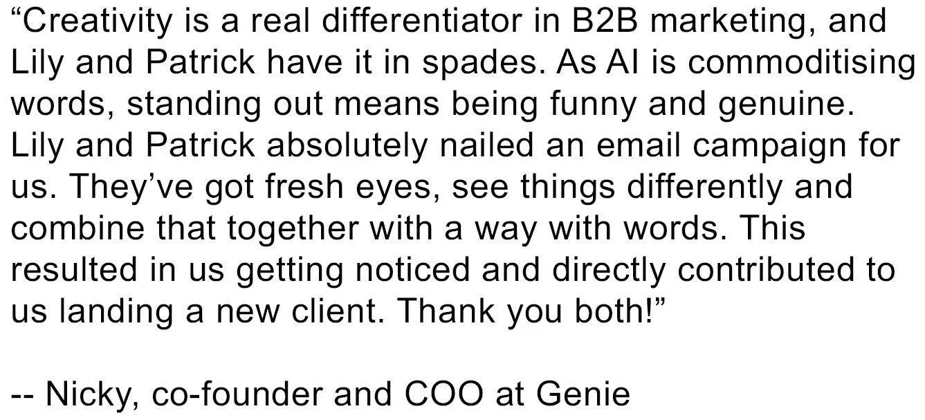 * We say “creative” not to label ourselves as creatives (absolutely not), but because we’re known to also come up with the concept and the strategy, not just the words.